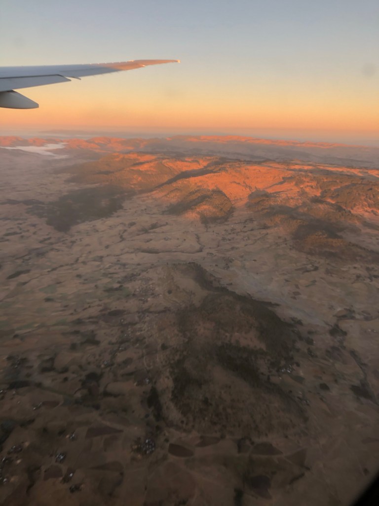 I couldn’t see much of the sunrise over Addis from my west side aisle seat but the airport was buzzing with all kinds of people from everywhere, wearing so many types of clothing and speaking so many languages, as we made our connection into Nairobi.